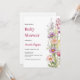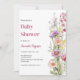 A chic white background. Decorated with a wildflowers in pink, purple, yellow. Personalise and add the name of the mum to be and party details.