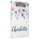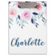 Elegant pink roses and blue leaves watercolor design with customisable text for a name or monogram on a clipboard.