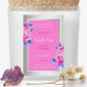 Make a lasting impression with this elegant floral design featuring pretty pink and purple flowers with a modern silver frame on a pink background.