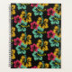 Hibiscus pattern tropical design with colourful flowers against a black background. This summer inspired graphic is inspiring to bring out your creative side and plan your best life.