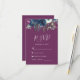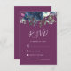 Floral Plum Navy Blue Watercolor Wedding RSVP Card