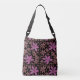 Floral seed pods of light brown and fuchsia pink. This design has a chic black background. I worked with this element in multiple layers. Available in Cross-body and Tote.