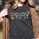 Celebrate your faith with vibrant style in this women's tee. Featuring the word "Pray" crafted from bright, colourful flowers in shades of pink, yellow, and blue, this design is both uplifting and eye-catching. A delicate yellow butterfly accent adds a touch of grace and whimsy. Perfect for expressing your faith in a fun and floral way, it's ideal for casual wear or as a thoughtful gift for someone special.