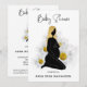 Energetically Enhanced GENDER NEUTRAL Minimalistic Baby Shower Invitation featuring PREGNANT MOM Side view with BABY BUMP with a background of soft White Daisies Flowers. The Daisy art is watercolor and very soft.