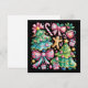 Floral Preppy Xmas Tree Bow Coquette Pink Blue Holiday Card