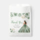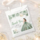 This sweet sixteen favor bag features a beautiful princess in a sage green ball gown with floral arrangements. This is perfect for a sweet sixteen birthday party.
