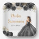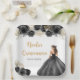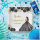 This Quinceanera plate features a beautiful princess in a black ball gown with floral arrangements. This is perfect for a sweet Quinceanera party.