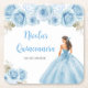 This Quinceanera coaster features a beautiful princess in a blue ball gown with floral arrangements. This is perfect for a Quinceanera birthday party.