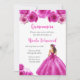 Floral Princess in Hot Pink Dress Quinceanera Invitation
