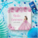 This Quinceanera plate features a beautiful princess in a light pink ball gown with floral arrangements. This is perfect for a sweet Quinceanera party.