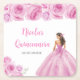This Quinceanera coaster features a beautiful princess in a light pink ball gown with floral arrangements. This is perfect for a sweet Quinceanera party.