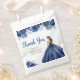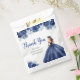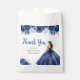 This quinceanera favor bag features a beautiful princess in a navy blue ball gown with floral arrangements. This is perfect for a quinceanera birthday party.