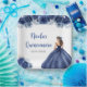 This Quinceanera plate features a beautiful princess in a navy blue ball gown with floral arrangements. This is perfect for a sweet Quinceanera party.