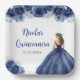 Floral Princess in Navy Blue Dress Quinceanera Paper Plate