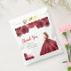 This Quinceanera favor bag features a beautiful princess in a burgundy red ball gown with floral arrangements. This is perfect for a sweet Quinceanera party.