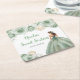 This sweet sixteen coaster features a beautiful princess in a sage green ball gown with floral arrangements. This is perfect for a sweet sixteen birthday party.