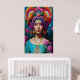 An image of a floral princess with pink makeup and head wrap. This is an AI generated artwork with a floral theme.