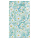 This small size paper gift bag is shown in a lovely blue daisy floral print.