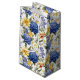 This small size paper gift bag is shown in a lovely blue multi colour floral print.