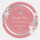 Make a lasting impression with this elegant floral design featuring a pretty round silver frame with silver flowers on a pink background.