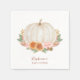 This floral baby shower paper napkin is decorated with a watercolor pumpkin, fall foliage, and stylish script typography.