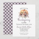 Thanksgiving dinner invite with fall floral pumpkin and burgundy plaid background.