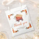 Rustic baby shower favour bag with a pumpkin wagon, orange and beige pumpkins and floral flower arrangements. Perfect for an autumn fall baby shower. The words can be changed to suit your own details or requirements