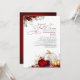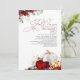 Fall in Love engagement party invitations feature burgundy red flowers and gold and white pumpkins