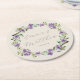 Floral Purple Botanical Wreath Wedding Monogram Round Paper Coaster