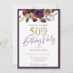 Floral Purple Gold Surprise 50th Birthday Party Invitation