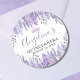 Add a whimsical and elegant touch to your party favours, candles, place settings, envelope closures, and more with this round sticker design! Featuring a charming lilac and lavender garden theme, the sticker showcases delicate watercolor lavender stems in various shades of purple, paired with soft green leaves. A sparkling purple tiara sits at the centre, making it perfect for a Quinceañera celebration. The text can be customised in a mix of classic serif and elegant script fonts, adding a fun yet sophisticated flair to your special day. Ideal for adding a personal, cohesive touch to all of your party details, this sticker can also be customised by changing the font colours or background. Floral Purple Quinceanera Classic Round Sticker