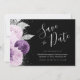 Floral Purple Silver Glitter Black Save the Date Invitation