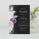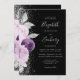 Floral Purple Silver Glitter Black Wedding Invitation