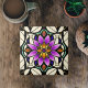 An artistic representation of a stained glass flower rendered using state-of-the-art technology. The design incorporates geometric shapes and lines, such as triangles, squares, and rectangles, to create a structured and organised pattern. The overall style of this design is art deco, which was a popular design movement in the early 20th century that emphasized bold geometric shapes, strong lines, and a sense of luxury and glamour.