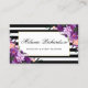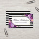 Elegant Purple Ultra Violet Gold Watercolor Floral Framed Business Card with Black & White Stripes