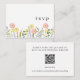 A modern wedding RSVP card featuring elegant watercolor flowers in soft pastel tones and a convenient QR code for easy online responses. Perfect for a stylish and effortless wedding RSVP experience.