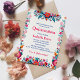 Elevate your Quinceañera celebration with our Floral Quinceañera White Mexican Fiesta Birthday Invitation, featuring an elegant white background adorned with regal royal blue and vibrant pink accents. The invitation exudes sophistication and energy with lively turquoise, orange, and pink floral patterns gracefully arranged on the pristine white canvas. The text, presented in royal blue and bright pink, adds a touch of chic contrast to the design. On the back of the invitation, a bouquet of traditional flowers creates a charming pattern against the clean white backdrop, adding an extra layer of elegance. This invitation is a perfect choice for those seeking a refined and festive touch for their Quinceañera celebration. Personalise the details to make it uniquely yours and set the stage for an unforgettable event.