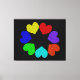 This awesome canvas print features a digitally created image of a circle of love hearts. Each heart is a different colour of the rainbow. The red, orange, yellow, green, blue, indigo and violet hearts are a bright fun way of expressing your love for a boyfriend, girlfriend, husband or wife. The background is black to create maximum impact.