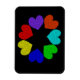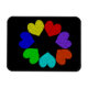 This awesome magnet features a digitally created image of a circle of love hearts. Each heart is a different colour of the rainbow. The red, orange, yellow, green, blue, indigo and violet hearts are a bright fun way of expressing your love for a boyfriend, girlfriend, husband or wife. The background is black to create maximum impact.