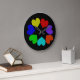 This awesome clock features a digitally created image of a circle of love hearts. Each heart is a different colour of the rainbow. The red, orange, yellow, green, blue, indigo and violet hearts are a bright fun way of expressing your love for a boyfriend, girlfriend, husband or wife. The background is black to create maximum impact.