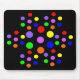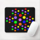 This mousepad features a series of spots representing the seven colours of the rainbow, red, orange, yellow, green, blue, indigo and violet. The spots are arranged to for a floral pattern. The seven larger spots form the centre of the flower and six smaller groups of spots form the outer petals resulting in a pretty eye-catching design.