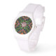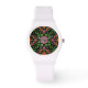 A chic White Sporty Wristwatch, with a colourful Floral Rangoli Pattern on a Black Background. Part of the Posh & Painterly 'Rangoli' collection, this pattern will fit any Wristwatch.