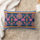 Floral Rangoli Pattern Border, Blue Lumbar Pillow
