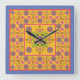 A pretty Square Acrylic Wall Clock, with a decorative floral border based on a Rangoli Pattern, on a Saffron Yellow background. Part of the Posh & Painterly 'Rangoli' collection.