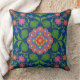 A chic Throw Pillow or Cushion with a colourful Floral Rangoli Pattern on a Deep Blue Background that you can change if you wish, using the 'dropper' icon. Part of the Posh & Painterly 'Rangoli' collection, this pattern will fit any square or round cushion or pillow.