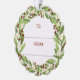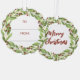 Beautiful floral Christmas gift tag with a wreath of sage green greenery, white flowers, and red berries where you can write to whom and from whom the Christmas gift is.