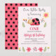 Floral Red Black Our Little Ladybug 1st Birthday Invitation