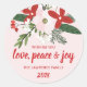 Floral Red Blush Pink Christmas Holiday Classic Round Sticker