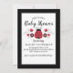 A cute black and red personalised baby shower invitation featuring an illustration of ladybug. This is perfect for a girl baby shower.