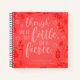 This lovely red notebook features the quote from William Shakespeare’s A Midsummer Night’s Dream “Though she be but little, she is fierce” surrounded by flowers and leaves against a red gradient background.